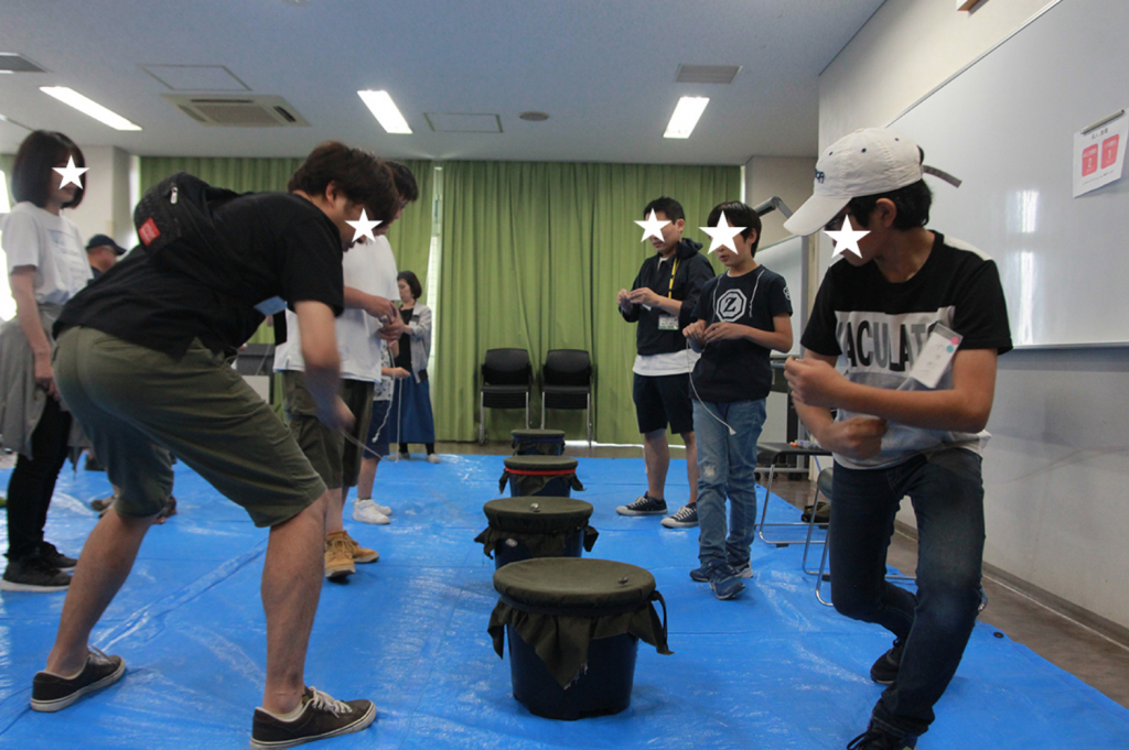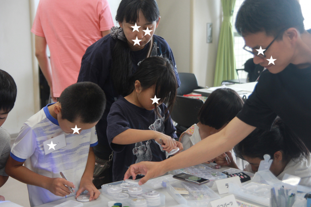 ベーゴマ初心者も経験者もできることが自由なのでデコレーションをやろうか、加工をやろうかどうしよう?となりました。