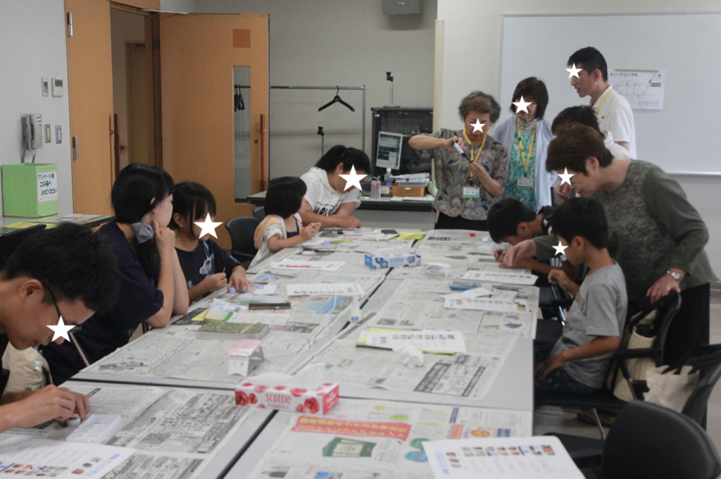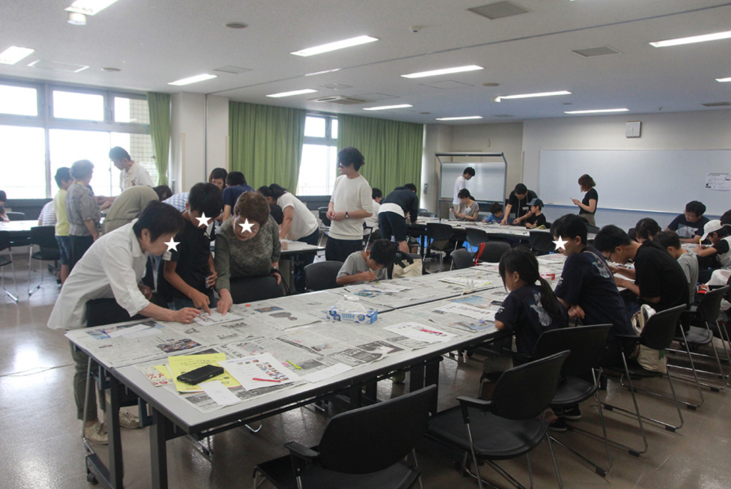 デコレーションができる方は「水色」のシール、加工ができ方は「赤」のシールを胸につけてもらいました。