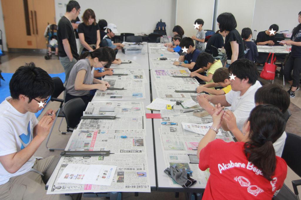 でも次第に参加者は素敵なベーゴマデコレーションを作ったり、鉄ヤスリを使ってベーゴマを削ったりと、想い想いのベーゴマを作り始めました。ベーゴマ1個だけでは足りず、追加して2個3個と作る方もいました。